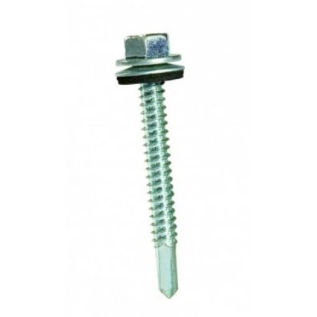 Vis TH autoperçeuse (autoforeuse) P5 Ø6.3, montée avec rondelle vulca, pour fixation sur support acier d’épaisseur 1.5 à 5mm.